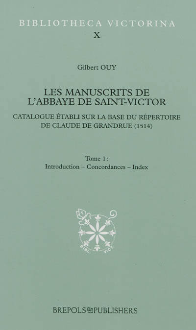 Fondée en 1113, l'abbaye parisienne de Saint-Victor se dota au cours des siècles d'un très riche fonds de manuscrits, dont un catalogue fort détaillé, remarquable pour l'époque, fut achevé en 1514 par le bibliothécaire Claude de Grandrue.