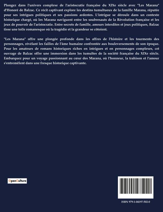 "Les Marana" offre une plongée profonde dans les affres de l'histoire et les tourments des personnages, révélant les failles de l'âme humaine confrontée aux bouleversements de son époque. Pour les amateurs de romans historiques riches en intrigues et en personnages complexes, cet ouvrage de Balzac offre une immersion dans les tumultes de la société française du XIXe siècle. Embarquez pour un voyage passionnant au coeur des Marana, où l'honneur, la trahison et l'amour s'entremêlent dans une fresque historique captivante.
