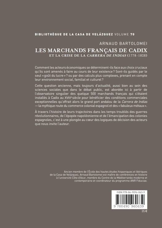 Cet ouvrage retrace la véritable épopée des quelque 500 marchands français qui s?étaient installés à Cadix pour faire fortune dans le commerce avec l?Amérique espagnole et dont les trajectoires furent marquées par les grands évènements de leur époque (Révolution française, guerres napoléoniennes, émancipations américaines). D?autre part, il propose une contribution inédite à la question centrale pour les sciences sociales d'aujourd'hui des logiques de décision des acteurs économiques.