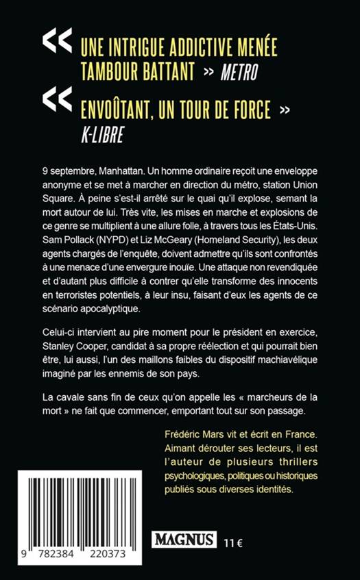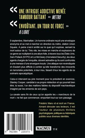 9 septembre, Manhattan. Un homme ordinaire reçoit une enveloppe anonyme et se met à marcher en direction du métro, station Union Square. À peine s'est-il arrêté sur le quai qu'il explose, semant la mort autour de lui. Très vite, les mises en marche et explosions de ce genre se multiplient à une allure folle, à travers tous les États-Unis. Sam Pollack (NYPD) et Liz McGeary (Homeland Security), les deux agents chargés de l'enquête, doivent admettre qu'ils sont confrontés à une menace d'une envergure inouïe. Une attaque non revendiquée et d'autant plus difficile à contrer qu'elle transforme des innocents en terroristes potentiels, à leur insu, faisant d'eux les agents de ce scénario apocalyptique.