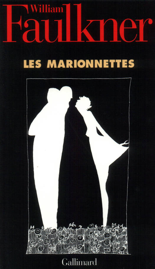 D'où vient Faulkner ? Avec la publication de cette piécette inédite composée en 1920 (c'est le "livre" le plus ancien qu'on ait de lui), on pourra répondre qu'il vient littérairement d'Europe, du XIXᵉ siècle finissant, du symbolisme français (Verlaine, qu'il a "traduit", Mallarmé, qu'il a imité, Laforgue, qu'il a connu, comme tous les Anglo-saxons, à travers les traductions proposées par Arthur Symons) et de la décadence anglaise (en particulier, pour ses dessins, Audrey Beardsley). Il a vingt-trois ans. En France, on se relève de la guerre ; il ne l'a pas faite : sa frustration est immense. Il joue les bohèmes, s'invente une blessure, s'inscrit comme étudiant à l'Université du Mississippi, où il fréquente un club d'art dramatique... du nom de "The Marionettes". Il écrit, puis copie, illustre et relie lui-même la piécette qu'il intitule Les marionnettes : l'art "total".