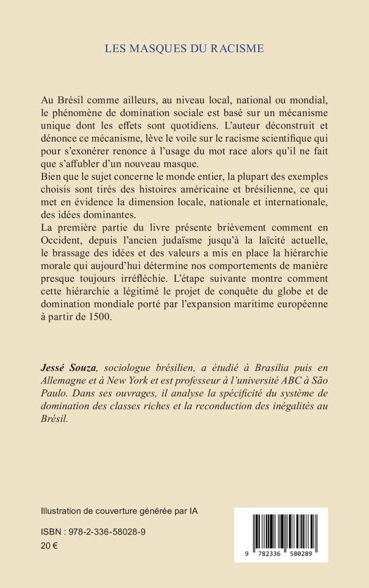 Au Brésil comme ailleurs, au niveau local, national ou mondial, le phénomène de domination sociale est basé sur un mécanisme unique dont les effets sont quotidiens. L'auteur déconstruit et dénonce ce mécanisme, lève le voile sur le racisme scientifique qui pour s'exonérer renonce à l'usage du mot race alors qu'il ne fait que s'affubler d'un nouveau masque. Bien que le sujet concerne le monde entier, la plupart des exemples choisis sont tirés des histoires américaine et brésilienne, ce qui met en évidence la dimension locale, nationale et internationale, des idées dominantes. La première partie du livre présente brièvement comment en Occident, depuis l'ancien judaïsme jusqu'à la laïcité actuelle, le brassage des idées et des valeurs a mis en place la hiérarchie morale qui aujourd'hui détermine nos comportements de manière presque toujours irréfléchie. L'étape suivante montre comment cette hiérarchie a légitimé le projet de conquête du globe et de domination mondiale porté par l'expansion maritime européenne à partir de 1500.