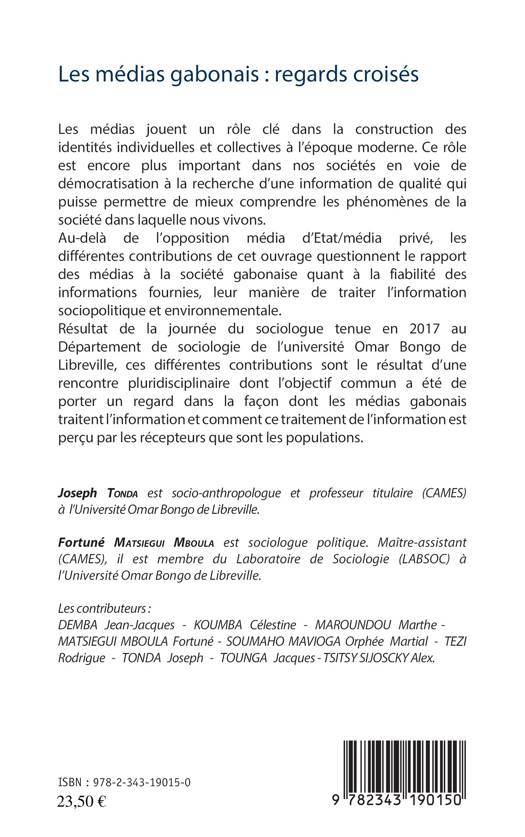 Les médias jouent un rôle clé dans la construction des identités individuelles et collectives à l'époque moderne. Ce rôle est encore plus important dans les sociétés en voie de démocratisation à la recherche d'une information de qualité qui puisse permettre de mieux comprendre les phénomènes de la société dans laquelle nous vivons. Au-delà de l'opposition média d'Etat/média privé, les différentes contributions de cet ouvrage questionnent le rapport des médias à la société gabonaise quant à la fiabilité des informations fournies, leur manière de traiter l'information sociopolitique et environnementale.