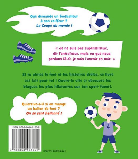 Que demande un footballeur à son coiffeur ? La Coupe du monde ! Qu'arrive-t-il si on mange un ballon de foot ? On se sent ballonné ! Si tu aimes le foot et les histoires drôles, ce livre est fait pour toi ! Ouvre-le vite et découvre les blagues les plus hilarantes sur ton sport favori.