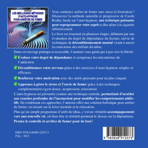 Dans son ouvrage, Carole Rodier propose une méthode naturelle et progressive pour se libérer de la dépendance au tabac. Elle met en avant l'utilisation de l'auto-hypnose comme outil principal pour déconditionner l'esprit des habitudes liées au tabagisme. Le livre est structuré en plusieurs étapes, débutant par une évaluation du degré de dépendance du lecteur, suivie de techniques de déconditionnement mental visant à ancrer la conscience des méfaits du tabac. L’auteur introduit également des exercices pratiques pour renforcer la volonté et préparer le lecteur au sevrage. Des méthodes complémentaires, telles que la gymnastique douce et l'acupression, sont proposées pour aider à gérer le stress et prévenir les rechutes. L'auto-hypnose est présentée comme une technique centrale, permettant d'accéder aux couches profondes de l'inconscient pour modifier les comportements addictifs. En combinant ces approches, l'auteur offre une solution holistique pour arrêter de fumer, en misant sur la force mentale et la relaxation.