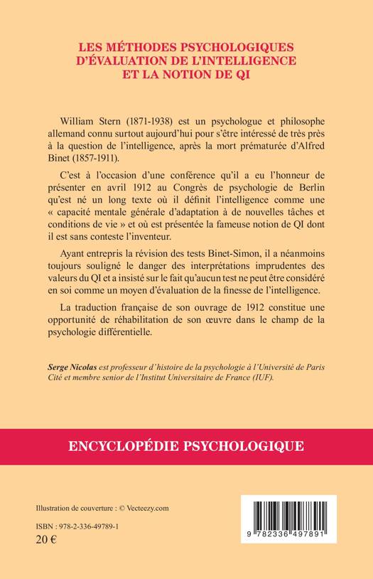 « capacité mentale générale d’adaptation à de nouvelles tâches et conditions de vie » et où est présentée la fameuse notion de QI dont il est sans conteste l’inventeur.