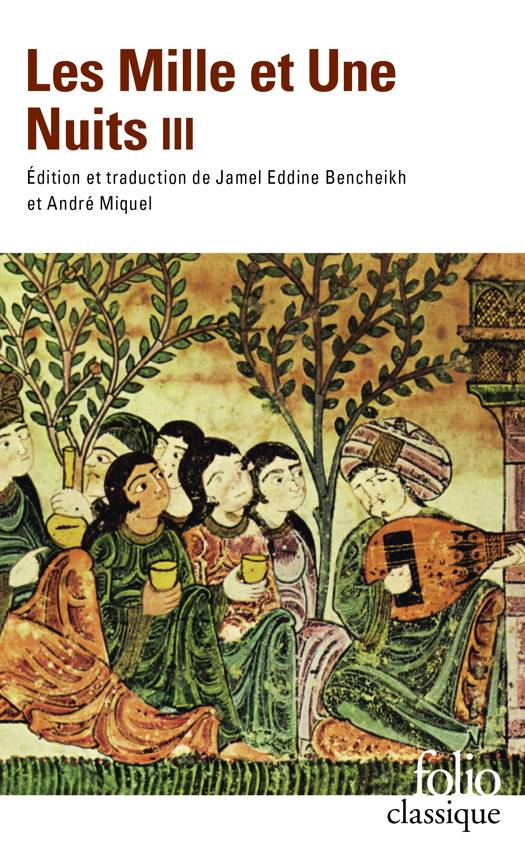"Pendant tout ce temps où elle avait raconté, Shahrâzâd avait donné au roi trois garçons. Quand elle eut terminé l'histoire de Ma'rûf le savetier, elle se leva, baisa le sol aux pieds du souverain et lui dit : - Ô roi de ce temps, unique en son siècle et jamais égalé, je suis ta servante et depuis mille et une nuits je te rapporte les récits des Anciens et les enseignements de ceux qui nous ont précédés. Puis-je espérer que, dans ta grandeur, tu me permettes de formuler un souhait ? - Oui et tu seras exaucée, Shahrâzâd."