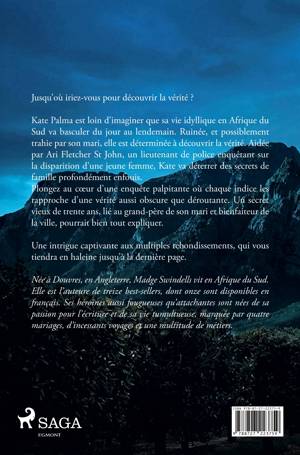 Jusqu'où iriez-vous pour découvrir la vérité ? Kate Palma est loin d'imaginer que sa vie idyllique en Afrique du Sud va basculer du jour au lendemain. Ruinée, et possiblement trahie par son mari, elle est déterminée à découvrir la vérité. Aidée par Ari Fletcher St John, un lieutenant de police enquêtant sur la disparition d'une jeune femme, Kate va déterrer des secrets de famille profondément enfouis. Plongez au coeur d'une enquête palpitante où chaque indice les rapproche d'une vérité aussi obscure que déroutante. Un secret vieux de trente ans, lié au grand-père de son mari et bienfaiteur de la ville, pourrait bien tout expliquer. Une intrigue captivante aux multiples rebondissements, qui vous tiendra en haleine jusqu'à la dernière page.