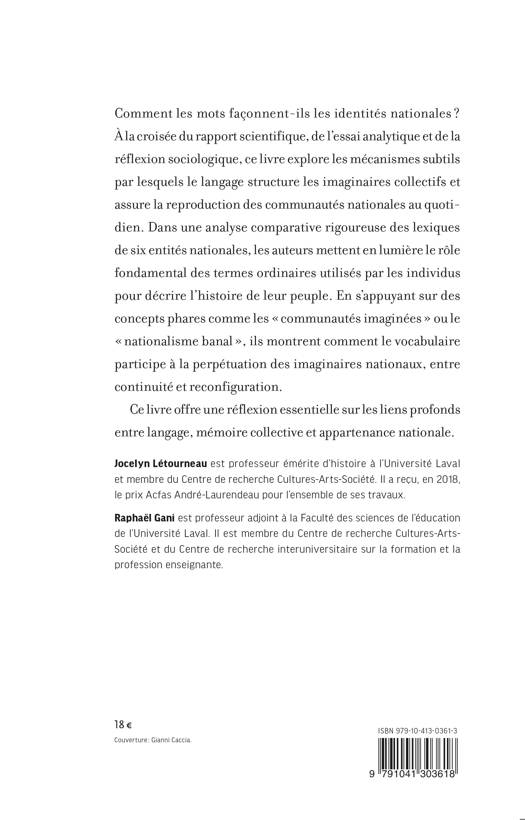 Comment les mots façonnent-ils les identités nationales ? À la croisée du rapport scientifique, de l’essai analytique et de la réflexion sociologique, ce livre explore les mécanismes subtils par lesquels le langage structure les imaginaires collectifs et assure la reproduction des communautés nationales au quotidien. Dans une analyse comparative rigoureuse des lexiques de six entités nationales, les auteurs mettent en lumière le rôle fondamental des termes ordinaires utilisés par les individus pour décrire l’histoire de leur peuple. En s’appuyant sur des concepts phares comme les « communautés imaginées » ou le « nationalisme banal », ils montrent comment le vocabulaire participe à la perpétuation des imaginaires nationaux, entre continuité et reconfiguration. Ce livre offre une réflexion essentielle sur les liens profonds entre langage, mémoire collective et appartenance nationale.