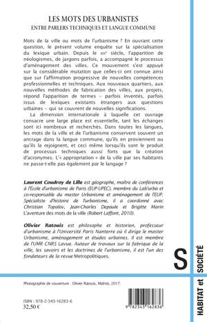 Mots de la ville ou mots de l'urbanisme ? En ouvrant cette question, le présent volume enquête sur la spécialisation du lexique urbain. Depuis le XIXe siècle, l'apparition de néologismes, de jargons parfois, a accompagné le processus d'aménagement des villes. Ce mouvement s'est appuyé sur la considérable mutation que celles-ci ont connue ainsi que sur l'affirmation progressive de nouvelles compétences professionnelles et techniques.