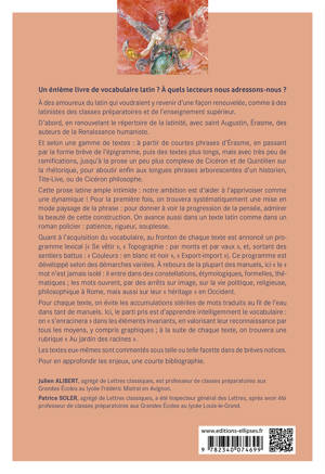 À des amoureux du latin qui voudraient y revenir d'une façon renouvelée, comme à des latinistes des classes préparatoires et de l'enseignement supérieur.