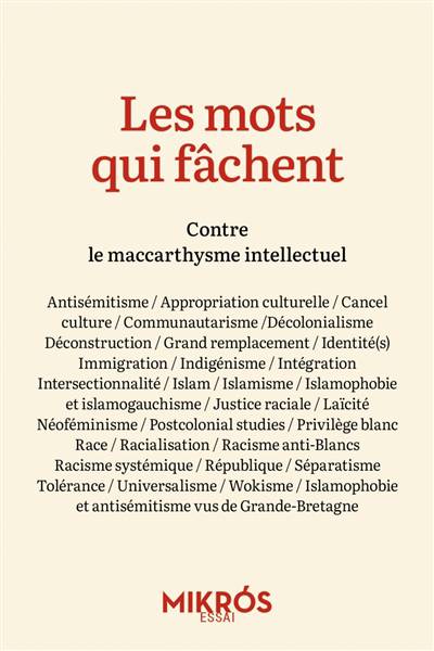 « Désireux d'écrire, de penser et de chercher librement, nous sommes toutes et tous déterminés à combattre ce nouveau maccarthysme qui se pare de la respectabilité universitaire pour mieux instaurer une police de la pensée. Tel est l'objectif de cet ouvrage dans lequel une trentaine d'auteur(e)s analysent de manière libre et indépendante, rationnellement, sans haine ni injure, les mots qui fâchent. »