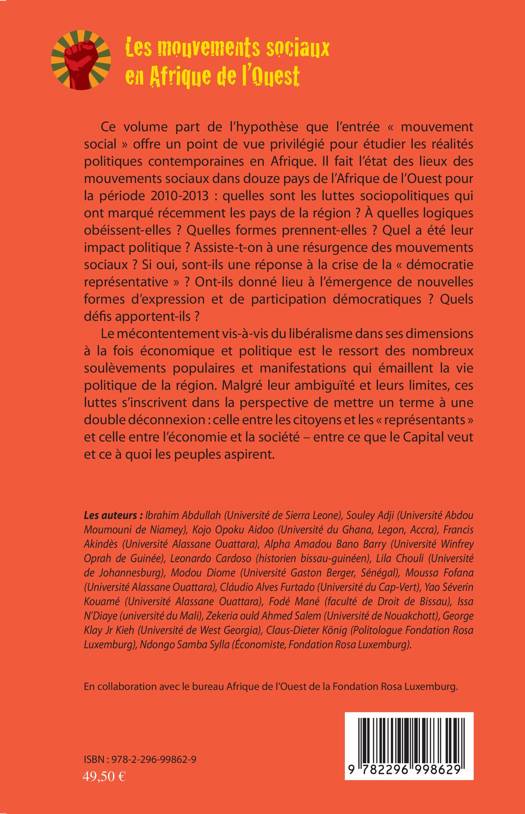 Ce livre fait l'état des lieux des mouvements sociaux dans douze pays de l'Afrique de l'Ouest pour la période 2012-2013 : quelles sont les luttes sociopolitiques qui ont marqué récemment les pays de la région ? A quelles logiques obéissent-elles ? Quelles formes prennent-elles ? Quel a été leur impact politique ? Assiste-t-on à une résurgence des mouvements sociaux ? Si oui, sont-ils une réponse à la crise de la "démocratie représentative" ?
