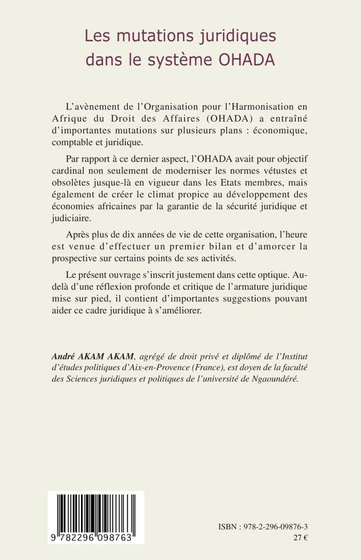 Les mutations juridiques dans le système OHADA