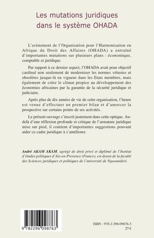 L'OHADA avait pour objectif, entre autres, de créer le climat propice au développement des économies africaines par la garantie de la sécurité juridique et judiciaire. Après plus de dix années de vie de cette organisation, cet ouvrage fait le bilan et propose une réflexion profonde et critique de l'armature juridique mise sur pied. Il contient d'importantes suggestions pouvant aider ce cadre juridique à s'améliorer.