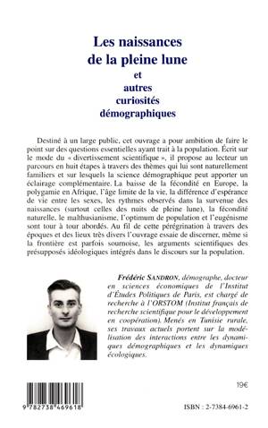 Destiné à un large public, cet ouvrage a pour ambition de faire le point sur des questions essentielles ayant trait à la population. Écrit sur le mode du « divertissement scientifique», il propose au lecteur un parcours en huit étapes à travers des thèmes qui lui sont naturellement familiers et sur lesquels la science démographique peut apporter un éclairage complémentaire. La baisse de la fécondité en Europe, la polygamie en Afrique, l'âge limite de la vie, la différence d'espérance de vie entre les sexes, les rythmes observés dans la survenue des naissances (surtout celles des nuits de pleine lune), la fécondité naturelle, le malthusianisme, l'optimum de population et l'eugénisme sont tour à tour abordés. Au fil de cette pérégrination à travers des époques et des lieux très divers l'ouvrage essaie de discerner, même si la frontière est parfois sournoise, les arguments scientifiques des présupposés idéologiques intégrés dans le discours sur la population.