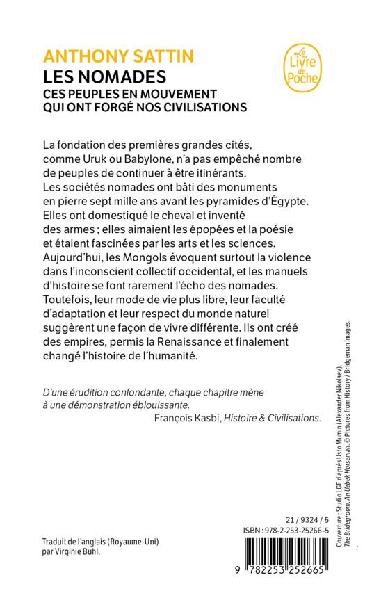 La fondation des premières grandes cités, comme Uruk ou Babylone, n’a pas empêché nombre de peuples de continuer à vivre en nomades. Les sociétés nomades ont bâti les premiers grands monuments en pierre sept mille ans avant les pyramides d’Égypte. Elles ont domestiqué le cheval et inventé des armes ; elles aimaient les épopées et la poésie et étaient fascinées par les arts et les sciences. Aujourd’hui, les Mongols évoquent surtout la violence dans l’inconscient collectif occidental, et les manuels d’histoire se font rarement l’écho des nomades. Toutefois, leur mode de vie plus libre, leur faculté d’adaptation et leur respect du monde naturel suggèrent une façon de vivre différente. Ils ont créé des empires, permis la Renaissance et finalement changé l’histoire de l’humanité.