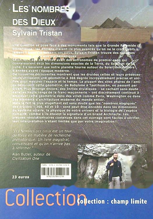 Une question se pose face à des monuments tels que la grande pyramide ou Stonehenge : les Anciens étaient-ils plus avancés qu'on ne le croit habituellement ? Dans cet ouvrage, Sylvain Tristan trouve des réponses fascinantes grâce aux mathématiques. Selon lui, l'âge du bronze avait des astronomes de premier rang qui connaissaient déjà les dimensions exactes de la Terre, du Soleil et de la Lune. Ils savaient que notre planète tourne autour du Soleil des milliers d'années avant l'époque moderne. De nouvelles découvertes montrent que les druides celtes et leurs prédécesseurs utilisaient une géométrie à 366 degrés incroyablement précise et unifiée pour mesurer l'espace et le temps. La plupart des sites phares de l'Antiquité suivent cette géométrie, de Babylone à Teotihuacán, en passant par Gizeh. Plus étrange encore, des initiés druidiques - se cachant sans doute dans les hauts rangs de la franc-maçonnerie - ont discrètement continué à employer cette géométrie dans des villes comme Paris, Washington ou dans des éléments d'architecture moderne du monde entier. Mais le fait le plus stupéfiant est sans doute que les ''nombres magiques'' des druides - 366, 40 et 10 - sont peut-être encodés dans les dimensions du système solaire, la physique de notre univers et la biologie de l'espèce humaine, comme s'ils étaient la signature d'un Grand Architecte. Les preuves révolutionnaires contenues dans cet ouvrage sont faciles à vérifier, leur interprétation n'étant limitée que par votre imagination !