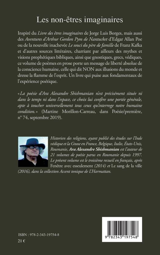 Inspiré du "Livre des êtres imaginaires" de Jorge Luis Borges, mais aussi des "Aventures d'Arthur Gordon Pym de Nantucket" d'Edgar Allan Poe ou de la nouvelle inachevée "Le souci du père de famille" de Franz Kafka et d'autres sources littéraires, charriant par ailleurs des mythes et visions prophétiques bibliques, ainsi que gnostiques, grecs, védiques, ce volume de poèmes en prose porte un message de liberté absolue de la conscience humaine. Celle qui dit NON aux illusions du monde et dresse la flamme de l'esprit.
