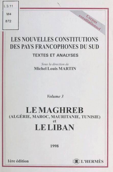 5. Les nouvelles constitutions des pays francophones du Sud, textes et analyses (3) : Le Maghreb (Algérie, Maroc, Mauritanie, Tunisie) et le Liban