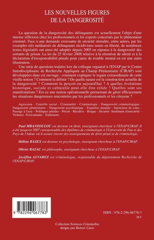 La question de la dangerosité des délinquants est actuellement l'objet d'une intense réflexion chez les professionnels et les experts concernés par le phénomène criminel. De nombreux textes législatifs ont été adoptés depuis 2005 en réponse à la dangerosité des sortants de prison. Comment expliquer le regain extraordinaire de cette vieille notion ? Comment la définir ? De quelle nature est la construction actuelle de la dangerosité ? Est-ce une notion opérationnelle permettant de gérer efficacement les situations dangereuses ?