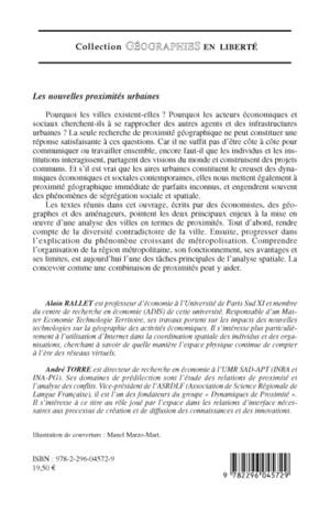 Ces textes écrits par des économistes, des géographes et des aménageurs, pointent les deux principaux enjeux d'une analyse des villes : tout d'abord, rendre compte de la diversité contradictoire de la ville ; ensuite, progresser dans l'explication du phénomène croissant de métropolisation, c'est-à-dire comprendre l'organisation de la région métropolitaine, son fonctionnement, ses avantages et ses limites. La concevoir comme une combinaison de proximités peut y aider.