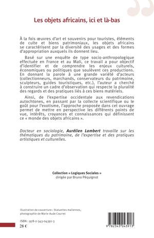 A la fois oeuvres d'art et souvenirs pour touristes, éléments de culte et biens patrimoniaux, les objets africains se caractérisent par la diversité des usages et des formes d'appropriation auxquels ils donnent lieu. Basé sur une enquête de type socio-anthropologique effectuée en France et au Mali, donnant la parole à une grande diversité d'acteurs, ce travail a pour objectif d'identifier et de comprendre les enjeux culturels, économiques ou politiques que soulèvent ces productions.