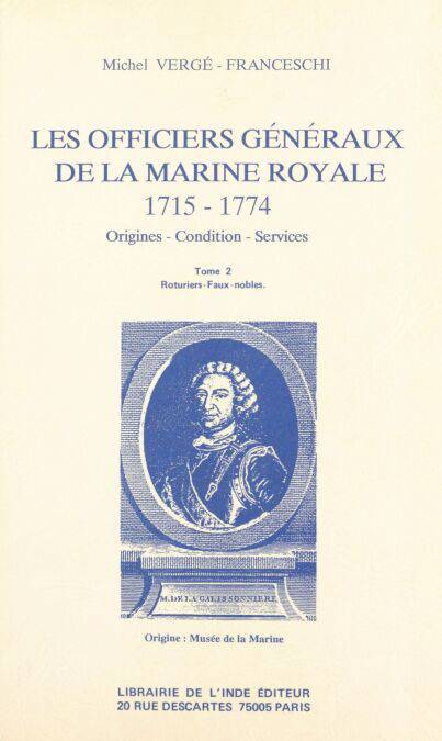 Cette thèse, soutenue pour le doctorat d'État ès lettres, à l'Université de Paris X Nanterre, le 3 juin 1987, a obtenu la mention "très honorable à l'unanimité du jury". C'est un véritable outil prosopographique consacré à la Marine de guerre d'Ancien Régime. Anoblis, faux nobles, Provençaux, Normands, Poitevins, gens du littoral ou de l'intérieur du royaume, Parisiens et courtisans, voisinent dans la Marine du Roi, et sont ici étudiés au plan de la naissance, de la fortune, du métier de marin. Les 131 généraux de mer du règne de Louis XV, joints à une partie des 65 généraux de mer du règne de Louis XIV (Tourville, Jean Bart, Duguay-Trouin), et à une partie de ceux du règne de Louis XVI et de la guerre d'Amérique, aboutissent à un index de 14 329 noms propres, de 500 vaisseaux ou frégates, de 4 500 noms de lieux, qui font revivre tout un pan de la société d'Ancien Régime (officiers de marine, armateurs malouins, câpres dunkerquois, hobereaux bretons, chevaliers de Malte provençaux, cadets de Bourgogne, gentilshommes vendéens, voire auvergnats, compagnons d'armes d'un d'Estaing).