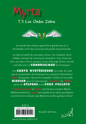 La rentrée des classes approche à grands pas et, à Fontebelle, la fin des vacances est plutôt mouvementée.<br /> La ville accueille de nouveaux venus : les créateurs de la célèbre marque de chaussures Lézardino. Une chose est sûre, ces deux-là ont quelque chose d’étrange. Et leur arrivée coïncide avec le cambriolage de la banque !<br /> Une carte mystérieuse est volée. Et voilà que le propriétaire de la banque (un vampire !) demande à Myrta d’enquêter. Qui est le coupable ? Voilà une nouvelle mission pour la Clairvoyante, Zombinina et Griffou, parmi les sylphes et les feux follets. <br /> Clémence, Laura et Rapha sont là pour soutenir Myrta. Malheureusement, Lucas est malade et on dirait que Rapha commence à se douter que Myrta lui cache quelque chose !