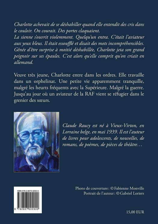 Veuve très jeune, Charlotte entre dans les ordres. Elle travaille dans un orphelinat. Une petite vie apparemment tranquille, malgré les heurts fréquents avec la Supérieure. Malgré aussi la guerre et les difficultés de nourrir des enfants auxquels elle s’attache plus qu’il ne le faudrait.<br /> Jusqu’au jour où un aviateur de la RAF vient se réfugier dans le grenier des soeurs. Enceinte, la religieuse se verra dès après l’accouchement privée de son fils, donné en adoption à son insu.<br /> Claude Raucy, né à Vieux-Virton, en Lorraine belge, en mai 1939, est un des doyens des lettres belges. Il est l’auteur de plus de cent ouvrages, livres pour adolescents, nouvelles, romans, poèmes, pièces de théâtre...