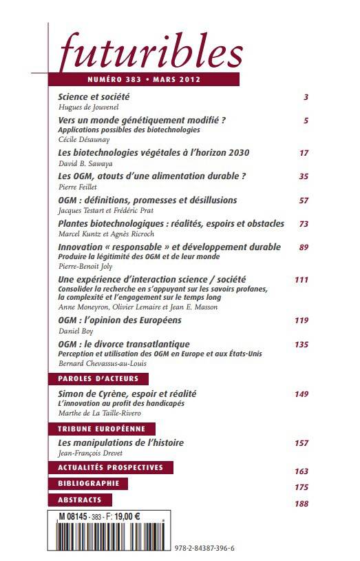 Innovation « responsable » et développement durable. Produire la légitimité des OGM et de leur monde Pierre-Benoit Joly