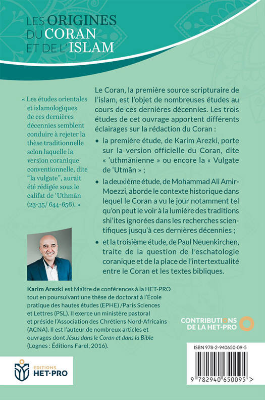 Le Coran, la première source scripturaire de l’islam, est l’objet de nombreuses études au cours de ces dernières décennies. Les trois études de cet ouvrage apportent différents éclairages sur la rédaction du Coran : la première étude, de Karim Arezki, porte sur la version officielle du Coran, dite « ’uthmanienne » ou encore la « Vulgate de ‘Utman » ; la deuxième étude, de Mohammad Ali Amir-Moezzi, aborde le contexte historique dans lequel le Coran a vu le jour notamment tel qu’on peut le voir à la lumière des traditions shi’ites ignorées dans les recherches scientifiques jusqu’à ces dernières décennies ; et la troisième étude, de Paul Neuenkirchen, traite de la question de l’eschatologie coranique et de la place de l’intertextualité entre le Coran et les textes bibliques.