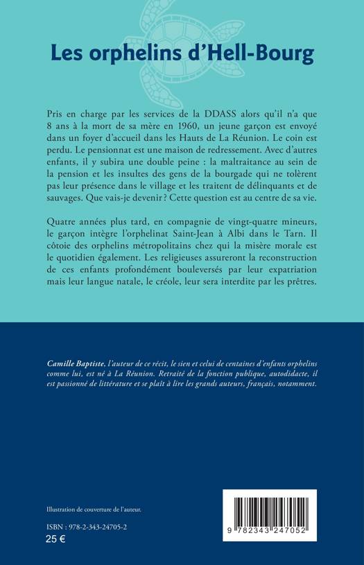 Pris en charge par les services de la DDASS alors qu’il n’a que 8 ans à la mort de sa mère en 1960, un jeune garçon est envoyé dans un foyer d’accueil dans les Hauts de La Réunion. Le coin est perdu. Le pensionnat est une maison de redressement. Avec d’autres enfants, il y subira une double peine : la maltraitance au sein de la pension et les insultes des gens de la bourgade qui ne tolèrent pas leur présence dans le village et les traitent de délinquants et de sauvages. Que vais-je devenir ? Cette question est au centre de sa vie. Quatre années plus tard, en compagnie de vingt-quatre mineurs, le garçon intègre l’orphelinat Saint-Jean à Albi dans le Tarn. Il côtoie des orphelins métropolitains chez qui la misère morale est le quotidien également. Les religieuses assureront la reconstruction de ces enfants profondément bouleversés par leur expatriation mais leur langue natale, le créole, leur sera interdite par les prêtres.