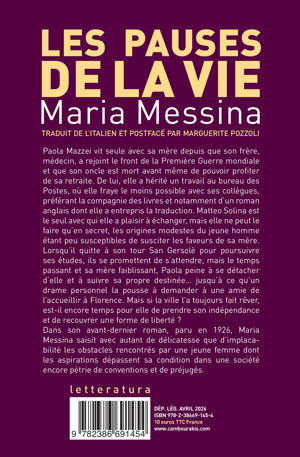 Paola Mazzei vit seule avec sa mère depuis que son frère, médecin, a rejoint le front de la Première Guerre mondiale et que son oncle est mort avant même de pouvoir profiter de sa retraite. De lui, elle a hérité un travail au bureau des Postes, où elle fraye le moins possible avec ses collègues, préférant la compagnie des livres et notamment d'un roman anglais dont elle a entrepris la traduction. Matteo Solina est le seul avec qui elle a plaisir à échanger, mais elle ne peut le faire qu'en secret, les origines modestes du jeune homme étant peu susceptibles de susciter les faveurs de sa mère. Lorsqu'il quitte à son tour San Gersolè pour poursuivre ses études, ils se promettent de s'attendre, mais le temps passant et sa mère faiblissant, Paola peine à se détacher d'elle et à suivre sa propre destinée... jusqu'à ce qu'un drame personnel la pousse à demander à une amie de l'accueillir à Florence. Mais si la ville l'a toujours fait rêver, est-il encore temps pour elle de prendre son indépendance et de recouvrer une forme de liberté ?