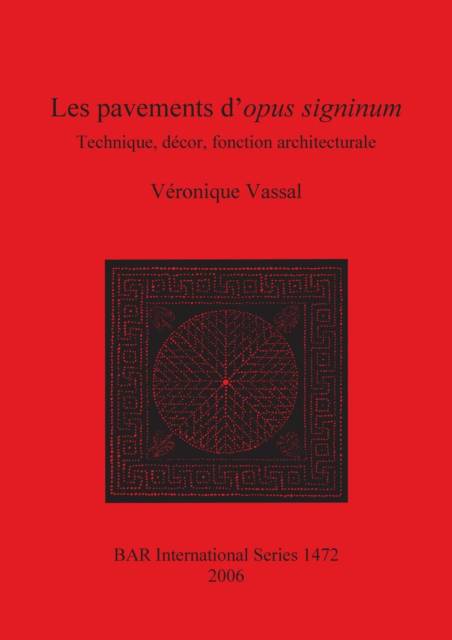 'Opus signinum' is an antique floor-covering technique, especially noted in the Mediterranean area. The technique is based on a waterproof mortar of a mixture of lime, water and tile powder which gives it a reddish colour. This current research focused mainly on the opus signinum process as recorded in the antique literature (especially Vitrivius and Pliny) and then scientific analysis, in order to define the composition of the mortar. Over 100 pavements from Mediterranean countries (5th c BC - 2nd c AD) have been compiled in the catalogue, making it possible to study the ornamental patterns and the various uses the rooms/spaces were put to.