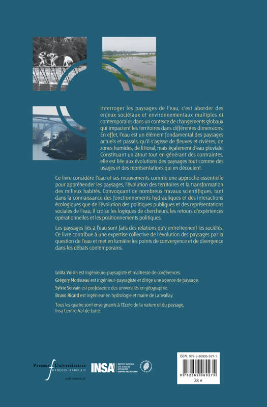 Interroger les paysages de l’eau, c’est aborder des enjeux sociétaux et environnementaux multiples et contemporains dans un contexte de changements globaux qui impactent les territoires dans différentes dimensions. En effet, l’eau est un élément fondamental des paysages actuels et passés, qu’il s’agisse de fleuves et rivières, de zones humides, de littoral, mais également d’eau pluviale. Constituant un atout tout en générant des contraintes, elle est liée aux évolutions des paysages tout comme des usages et des représentations qui en découlent. Ce livre considère l’eau et ses mouvements comme une approche essentielle pour appréhender les paysages, l’évolution des territoires et la transformation des milieux habités. Convoquant de nombreux travaux scientifiques, tant dans la connaissance des fonctionnements hydrauliques et des interactions écologiques que de l’évolution des politiques publiques et des représentations sociales de l’eau, il croise les logiques de chercheurs, les retours d’expériences opérationnelles et les positionnements politiques. Les paysages liés à l’eau sont faits des relations qu’y entretiennent les sociétés. Ce livre contribue à une expertise collective de l’évolution des paysages par la question de l’eau et met en lumière les points de convergence et de divergence dans les débats contemporains.