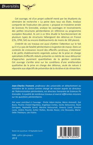 Cet ouvrage, né d’un projet collectif mené par les étudiants du séminaire de recherche « La peine dans tous ses États. Analyse comparée de l’exécution des peines » proposé en troisième année de Sciences Po Grenoble, analyse les avantages et inconvénients des petites structures pénitentiaires en référence au programme européen Rescaled. Ils ont à ce titre étudié le fonctionnement de plusieurs types de structures hébergeant des détenus en France (CSL, EPM, SAS ou encore établissements de moins de 100 places). L’intérêt de ces travaux est aussi d’attirer l’attention sur le fait qu’il n’y a pas de fatalité pénitentiaire à la gestion de masse. Dans un contexte de croissance record des effectifs carcéraux, s’intéresser à de petits établissements organisés autour de la prise en charge spécialisée d’effectifs réduits présente ce mérite de nous détourner d’approches purement quantitatives de la gestion carcérale. Cet ouvrage s’arrête ainsi sur les conditions d’une amélioration qualitative de la prise en charge des détenus, seule de nature à répondre aux objectifs de prévention de la récidive et de réinsertion.