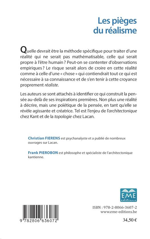 Peut-on croire à la réalité propre de l'être humain comme à celle d'une « chose » dont l'observation contiendrait tout ce qui est nécessaire à sa connaissance ? Non, car cette illusion piège la pensée et la dépouille de son pouvoir agissant et créateur, que soutiendraient des méthodes philosophiques comme l'architectonique de Kant et psychanalytiques comme la topologie de Lacan.