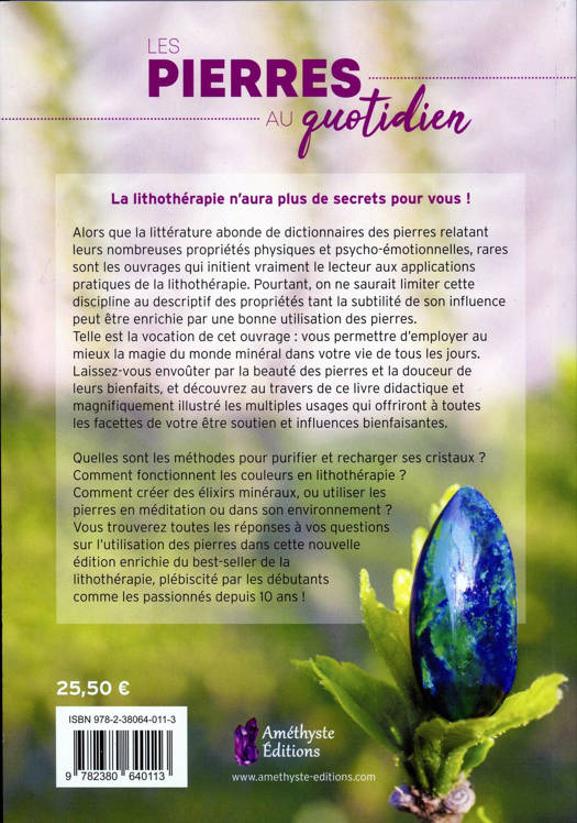 La lithothérapie n'aura plus de secrets pour vous ! Alors que la littérature abonde de dictionnaires des pierres relatant leurs nombreuses propriétés physiques et psycho-émotionnelles, rares sont les ouvrages qui initient vraiment le lecteur aux applications pratiques de la lithothérapie. Pourtant, on ne saurait limiter cette discipline au descriptif de ses outils tant la subtilité de son influence peut être enrichie par une bonne utilisation des pierres. Telle est la vocation de cet ouvrage : vous permettre d'employer au mieux la magie du monde minéral dans votre vie de tous les jours. Laissez-vous envoûter par la beauté des pierres et la douceur de leurs bienfaits, et découvrez au travers de ce livre didactique et magnifiquement illustré les multiples usages qui offriront à toutes les facettes de votre être soutien et influences bienfaisantes. Quelles sont les méthodes purifier et recharger ses cristaux ? Comment fonctionnent les couleurs en lithothérapie ? Comment créer des élixirs minéraux, ou utiliser les pierres en méditation ou dans son environnement ? Vous trouverez toutes les réponses à vos questions sur l'utilisation des pierres dans cette nouvelle édition enrichie du best-seller de la Lithothérapie, plébiscité par les débutants comme les passionnés depuis 10 ans !