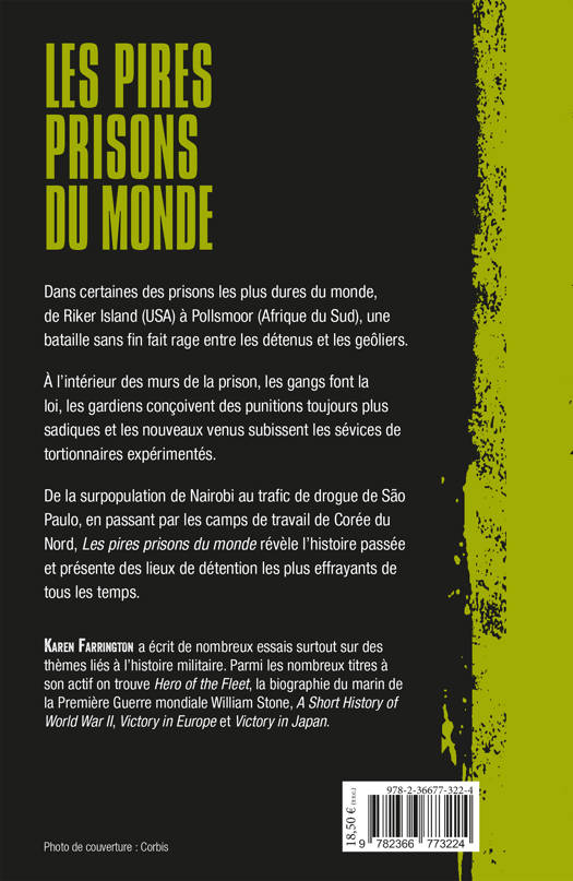 Après une brève reconstitution historique, des souterrains des châteaux aux colonies pénitentiaires australiennes, des îles-prisons aux prisons, Karen Farrington fait la lumière sur les controverses et les imperfections du système carcéral, en explorant les pires prisons de l’histoire.