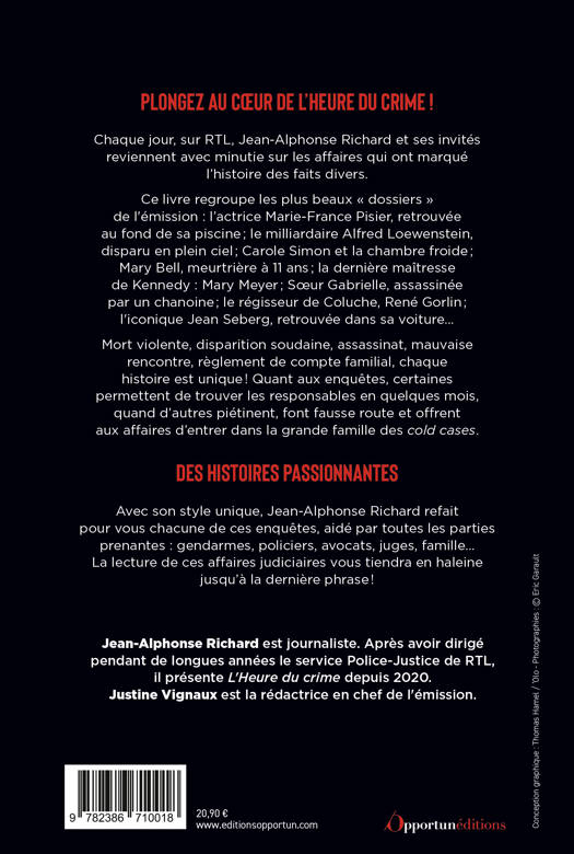 Avec son style unique, Jean-Alphonse Richard refait pour vous chacune de ces enquêtes, aidé par toutes les parties prenantes : gendarmes, policiers, avocats, juges, famille...