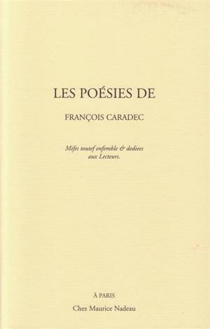 Camarades du bon passé ne vous en faites pas nous nous reverrons il n'y a que la vie qui nous sépare vous êtes morts plus vite que moi vous verrez que je n'ai pas changé et je l'espère vous non plus… Ne dites rien camarades je viendrai bien assez tôt vous rejoindre chez la mère Crocknuff la vieille rombière de la mort prématurée camarades je ne vous ai pas oubliés à bientôt camarades. 2013. François Caradec, membre de l'Oulipo, mort en 2008, est l'auteur de biographies de référence d'Isidore Ducasse, d'Alfred Jarry, de Raymond Roussel, d'Alphonse Allais, de Willy, « le père des Claudine » et de petits volumes de «bandes dessinées en prose». Il a publié chez Maurice, Nadeau en 1999, Le Porc, le Coq et le Serpent et, en 2007, Les Nuages de Paris.