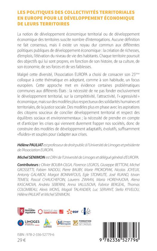 La notion de développement économique territorial ou de développement économique des territoires suscite nombre d'interrogations. Aucune définition ne fait consensus, mais il existe un noyau dur commun aux différentes politiques publiques de développement économique la création de richesses, d'emplois, l'élévation du niveau de vie des habitants. Chaque territoire poursuit des objectifs qui lui sont propres, en fonction de son histoire, de sa culture, de son économie, de ses forces et de ses faiblesses. Malgré cette diversité, l'Association EUROPA a choisi de consacrer son 25ème colloque à cette thématique en adoptant, comme à son habitude, un focus européen. Cette approche met en évidence certaines problématiques communes aux différents États la nécessité de ne pas fonder exclusivement le développement territorial, sur la compétitivité, l'attractivité, l'"agressivité" économique, mais sur des modèles plus respectueux des solidarités humaines et territoriales, de la justice sociale. Des modèles plus en phase avec les aspirations des citoyens soucieux de concilier développement territorial et respect des équilibres sociaux et environnementaux; la nécessité de prendre en compte et d'anticiper les crises qui viennent durement frapper nos sociétés, donc de construire des modèles de développement adaptatifs, évolutifs, suffisamment "fluides" et souples pour s'adapter aux crises.