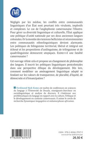 L'émergence de groupes séparatistes au Cameroun anglophone montre toute la sensibilité de la gestion des langues dans un État qui a du mal à se construire en tant que nation. Plusieurs types de politiques ont été essayées pour gérer la diversité des langues du Cameroun. Elles n'ont satisfait ni les communautés de locuteurs des langues officielles, ni les défenseurs des langues étrangères, encore moins les partisans des langues mixtes. Y a-t-il une fatalité des politiques linguistiques camerounaises ? Cet ouvrage dit non et propose de changer de philosophie des langues. Il opte pour un aménagement linguistique alternatif et éthique.