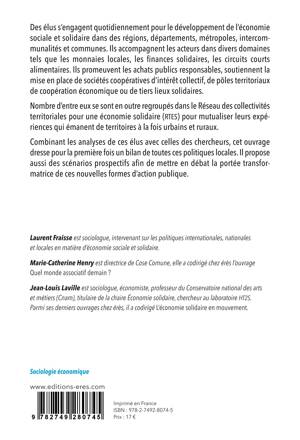 L’ouvrage permet de positionner les politiques locales de l’ESS au regard des compétences des collectivités locales. Il esquisse des scénarios d’évolution de la cohésion sociale et territoriale pour la nécessaire transformation de l’action publique afin de relever l’urgence d’une transition écologique, démocratique et solidaire.