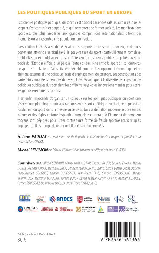Explorer les politiques publiques du sport, c'est d'abord parler des valeurs autour desquelles le sport s'est construit et perpétué, et qui permettent de former société. Les manifestations sportives, des plus modestes aux grandes compétitions internationales, offrent des moments où se rassemble une population, une nation. L'association EUROPA a souhaité éclairer les rapports entre sport et société, mais aussi porter une attention particulière à la gouvernance du sport (particulièrement complexe, multi-niveaux et multi-acteurs, avec l'intervention d'acteurs publics et privés, avec un poids de l'État qui diffère d'un pays à l'autre) et aux liens entre le sport et les territoires. Le sport est un facteur d'attractivité indéniable pour le développement économique et un élément essentiel d'une politique locale d'aménagement du territoire. Les contributions des partenaires européens membres du réseau EUROPA soulignent la diversité de la gestion des politiques publiques du sport dans les différents pays et les innovations menées pour attirer les grands évènements sportifs. Il est enfin impossible d'organiser un colloque sur les politiques publiques du sport sans réserver une place importante aux rapports entre sport et éthique. En effet, l'éthique est au fondement du sport, dans la mesure où celui-ci, dans sa définition moderne, repose sur des valeurs et des règles de forte inspiration humaniste et morale. À l'heure où de nombreux moyens sont déployés pour lutter contre toute forme de fraude sportive (paris truqués, dopage...), il est temps de tenter un bilan des actions menées.