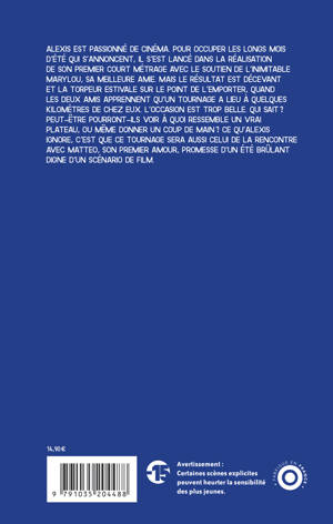 Alexis est passionné de cinéma. Pour occuper les longs mois d'été qui s'annoncent, il s'est lancé dans la réalisation de son premier court métrage avec le soutien de l'inimitable Marylou, sa meilleure amie. Mais le résultat est décevant et la torpeur estivale sur le point de l'emporter, quand les deux amis apprennent qu'un tournage a lieu à quelques kilomètres de chez eux. L'occasion est trop belle. Qui sait ? Peut-être pourront-ils voir à quoi ressemble un vrai plateau, ou même donner un coup de main ? Ce qu'Alexis ignore, c'est que ce tournage sera aussi celui de la rencontre avec Matteo, son premier amour, promesse d'un été brûlant digne d'un scénario de film.