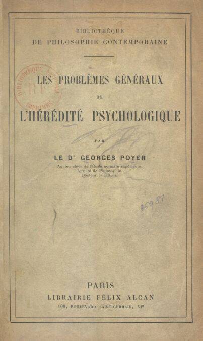 Les problèmes généraux de l'hérédité psychologique EBOOK