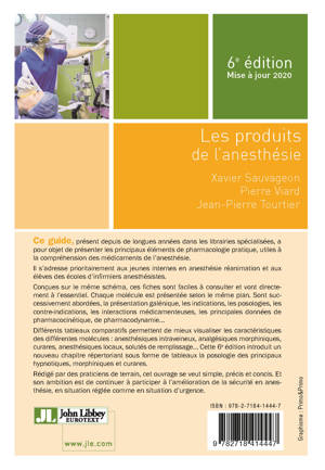 Ce guide, présent depuis de longues années dans les librairies spécialisées, a pour objet de présenter les principaux éléments de pharmacologie pratique, utiles à la compréhension des médicaments de l'anesthésie.