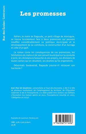 Adrien, le maire de Bagaude, un petit village de montagne, se trouve brutalement face à deux promesses qui peuvent modifier considérablement sa politique municipale et le développement de sa commune, la construction d'un barrage et celle d'un golf. Le roman conte les conséquences de ces promesses, les hésitations du maire et de son conseil municipal sur la conduite à tenir, les résistances farouches à ces projets, les divisions de toutes sortes qui en résultent, les drames qu'ils engendrent. Désormais bouleversé, Bagaude pourra-t-il retrouver son harmonie ?